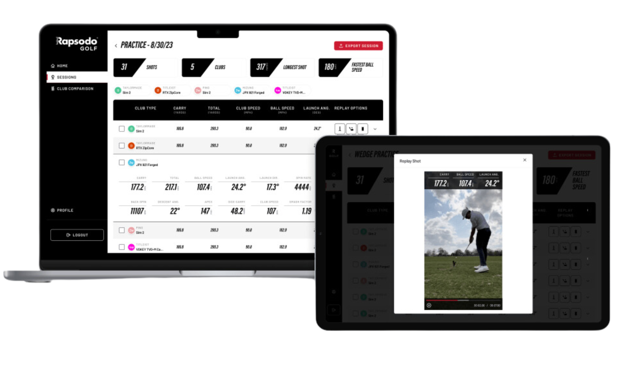- Rapsodo Target Range: 72 customizable target distances for precise practice